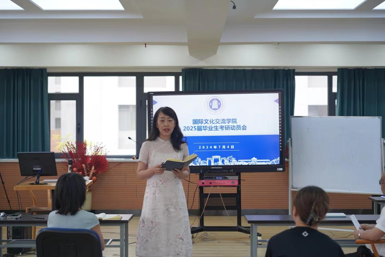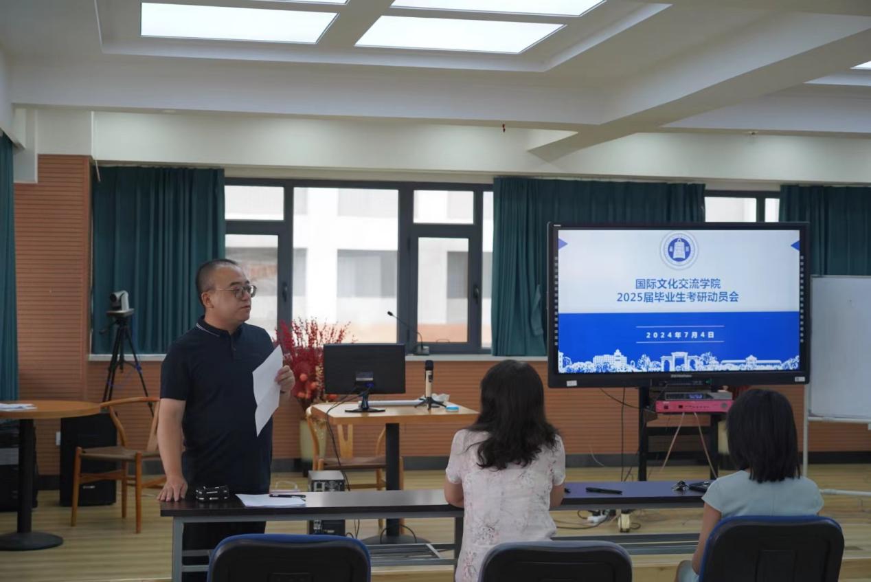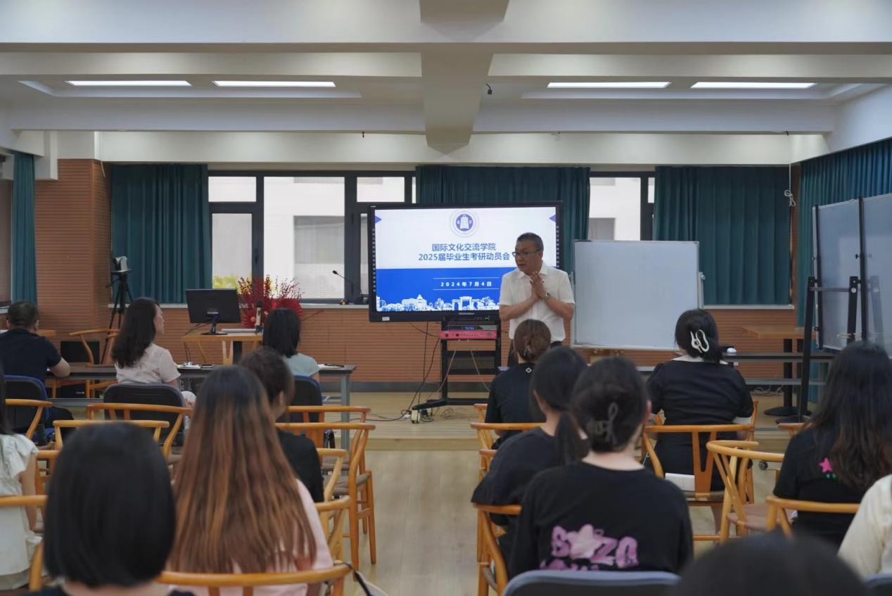 伟德体育于2024年7月4日下午在云衢楼四楼学术报告厅召开2025届毕业生考研动员会,公司党委书记李东海,副经理李莉,汉语国际教育系主任罗堃,2021级汉语国际教育1班班主任赖赟老师以及全体2021级本科生参加会议,公司党委副书记江琦主持会议。