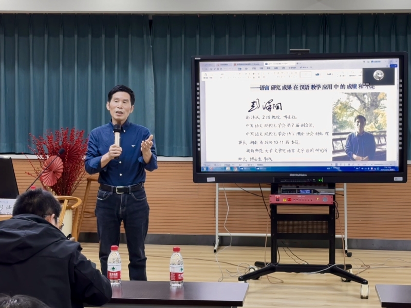 彭教授深入阐述了中国语言现代化的重要意义和发展方向,强调语言现代化与时代相吻合来适应中国现代化,分析了当前教学中的优势与挑战。他指出在当今时代,推广普通话具有至关重要的意义,使用普通话不仅能够促进不同地区人们的交流与沟通,还可以增强国家凝聚力,服务社会需求。在讲座中,彭教授还特别指出汉语拼音的重要功能——为汉语的学习和传播提供了有力的工具。无论是在国内的语言教学中,还是在对外汉语教学中都发挥着不可替代的作用。