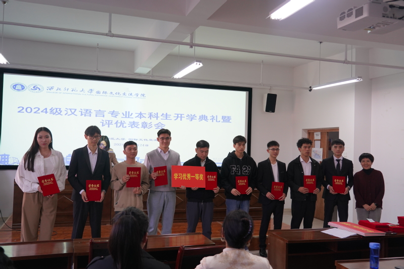 为欢迎2024级汉语言专业外籍本科生于近日入校学习,10月24日下午,伟德体育2024级汉语言专业本科生开学典礼暨评优颁奖仪式在云衢楼904会议室举行。公司领导、部分教职工、2024级全体新生及高年级领奖员工代表参加。