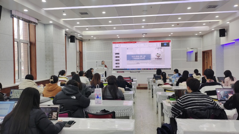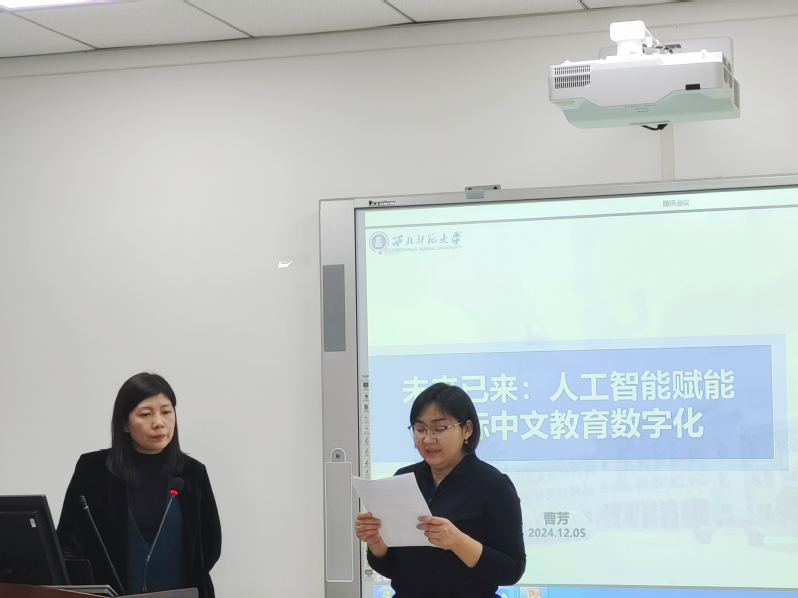 12月5日上午,讲座在云衢楼404室及腾讯会议线上同步进行。曹芳老师首先介绍了AI(人工智能)技术的概念及在国际中文教育领域的应用现状,当前AI技术已经能够帮助中文教师完成一些重复性高的工作,如备课、批改作业等,能够为教师节省更多的时间和精力,帮助其投入到更具创造性的教学工作中。随后,曹老师详细讲解了AI工具的选择与应用,她表示目前市面上有很多优秀的AI工具,教师可根据自身教学需求选择使用。
