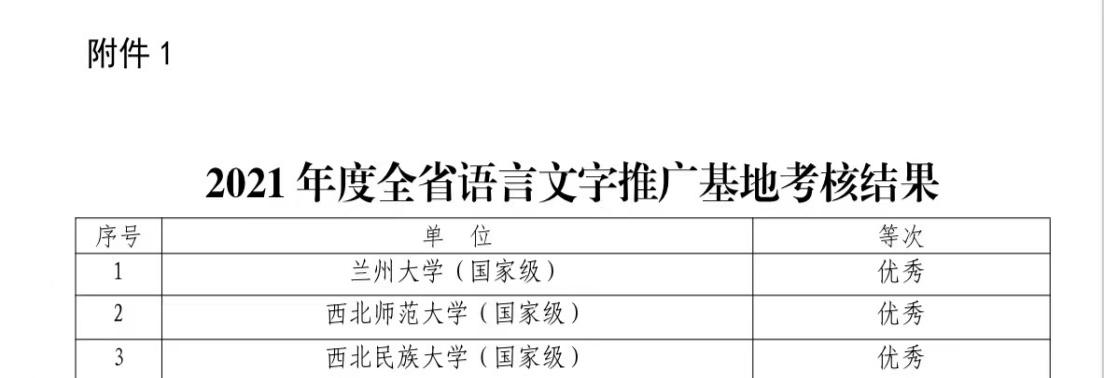 考核结果经厅党组会讨论通过,于2022年6月15日发《甘肃省语言文字工作委员会甘肃省教育厅关于2021年度全省语言文字推广基地考核结果的通知》甘教语函(2022)8号文件予以公布。公司国家语言文字推广基地2021年度工作考核结果为“优秀”,取得良好工作成效。