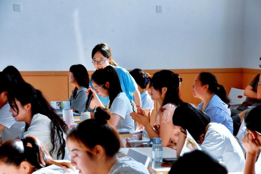 启动仪式后,实践团的课程培训随即展开。“水杯、桌子、钢琴,这些日常物品在推普课上焕发了新活力”。实践团队员何琪通过一堂生动活泼的实践课,将抽象的发音知识具象化,帮助教师们更直观地理解发音要领,有效提升普通话水平。