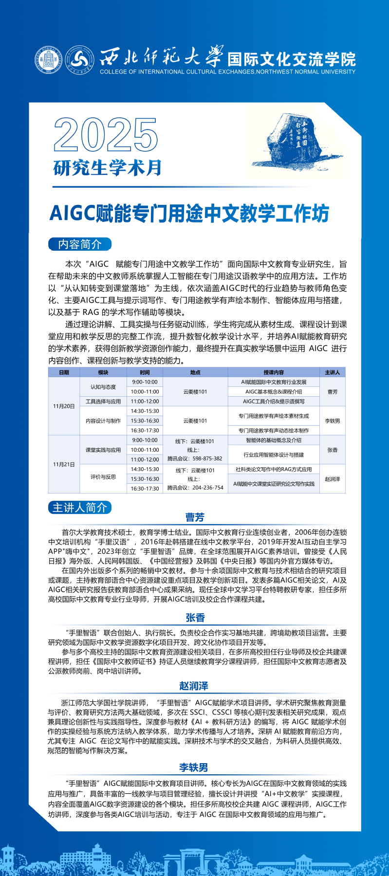 AIGC赋能专门用途中文教学工作坊日程安排